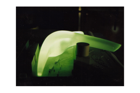 Als Ausgangspunkt für die Diplomarbeit dienen die Unterlagen eines im Jahr 2000 ausgeschriebenen Wettbewerbes in Ingolstadt: Schaffung eines Museumskomplexes für Kunst und Design, zur Beherbergung einerseits der Sammlung Winkler (Design), andererseits der Bestandes des Museums für Konkrete Kunst Ingolstadt. Markantes Merkmal des Grundstückes ist der denkmalgeschützte Wasserturm, den es zu integrieren galt. Der Entwurf zeigt oberirdisch eine organische Form die den runden Turm zu umwerben, zu schützen scheint. Gleichzeitig streckt der Bau seine Fühler in zwei Richtungen, als Spange zwischen der Innenstadt und der Donau. Unter Niveau ist ein Teil der Autosammlung untergebracht. Die Oldtimer sind auf gleicher Höhe mit den vorbeifahrenden Fahrzeugen am Donauufer platziert. Durch die großzügige Verglasung treten sie in ständigen Dialog miteinander. Der Mehrwert der Bebauung liegt neben der weiten Sichtbarkeit und Naheverhältnis zum Besucher, in den unterschiedlichen Freiräumen die zum Verweilen, Spielen und Treffen einladen und die innere Stadt näher an die Donau rücken lässt.