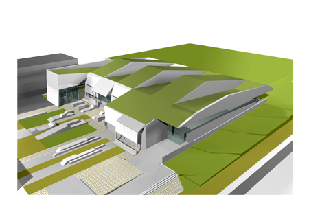 Die Entwurfsidee des Wettbewerbes für eine Dreifachsporthalle in Graz ist die gefaltete Landschaft, ein fließender Übergang von zwei Bereichen: Sportplatz und urbaner Hof, ein Bauköper der nicht abschließt und ausgrenzt sondern öffnet, verbindet und ergänzt. Die Charakteristik der Funktion - SPORT: Dynamik | Höhen und Tiefen | Teambildung manifestiert sich in der bewegten Dachform. Durch Ergänzung und Reaktion auf die Umgebung wird eine deutliche Verbesserung und Vernetzung der bestehenden Bebauung erreicht. Teil des Gesamtkonzeptes ist die Platzbildung, als soziales, gesellschaftliches und ökologisches Plus am Campus. Die Leitidee einer gefalteten Landschaft wird auch in der Gestaltung der Freiräume weitergeführt.